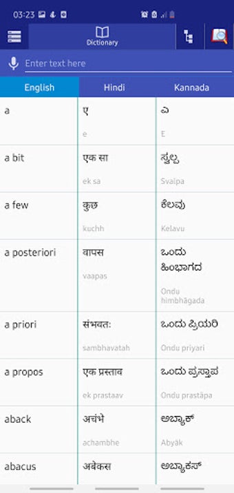قاموس الهندية الكانادا: أداة تعلم غير متصلة بالإنترنت
